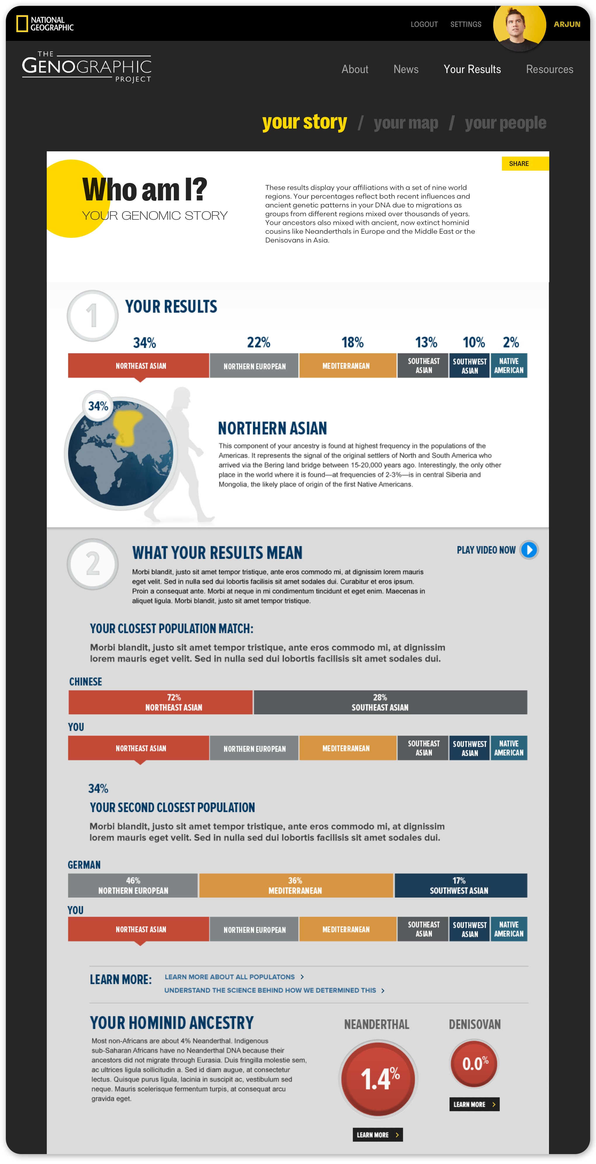 IN 2011 I began working with National Geographic to lead the experience design for the Genographic Project, an initiative run by the scientist and author, Spencer Wells. I led design and development for all aspects of the product and helped form new organizational strategies to sustain a design-driven approach for future work.