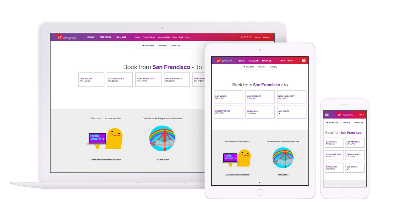 I worked with Virgin America to help lead the re-design of their digital experience. I began consulting with their executive team early in the process to develop a user-centered strategy for the project, and ended up staying on to lead the research and design across all formats (web, mobile, kiosk, in-flight).